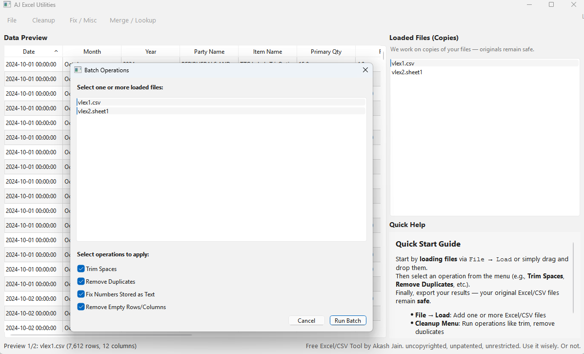 A Free, lightweight tools that i created over weekends designed to make your Excel/CSV task easier. Runs locally, without sending your data anywhere.