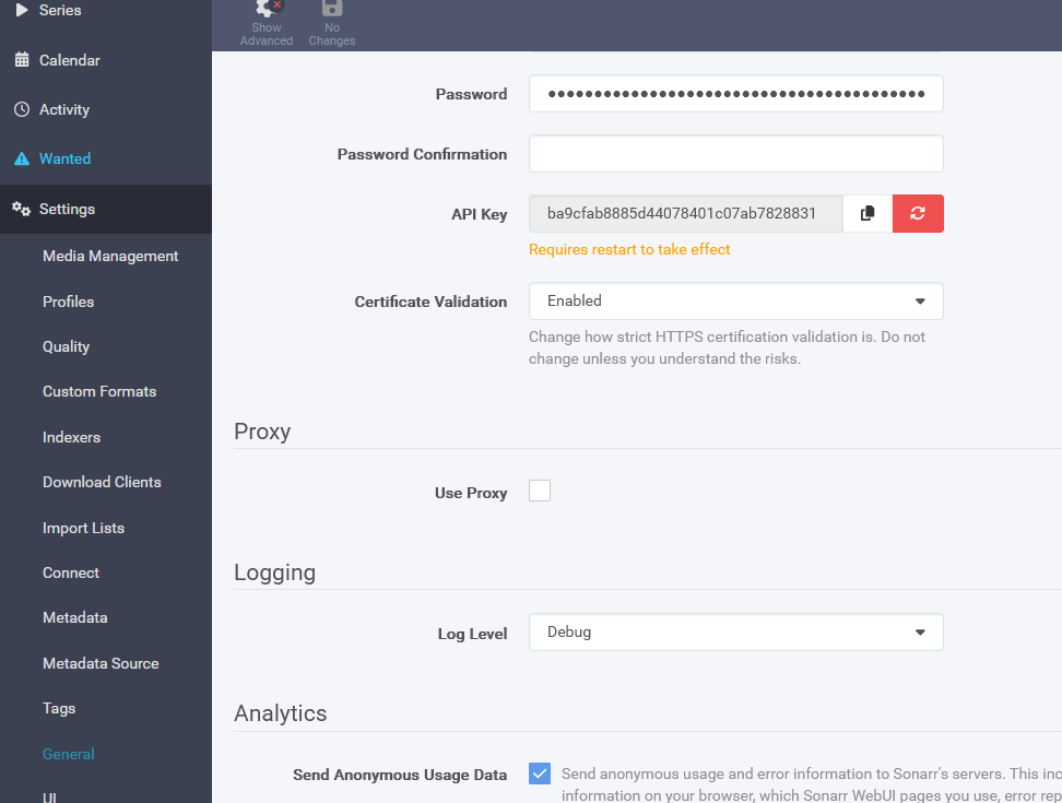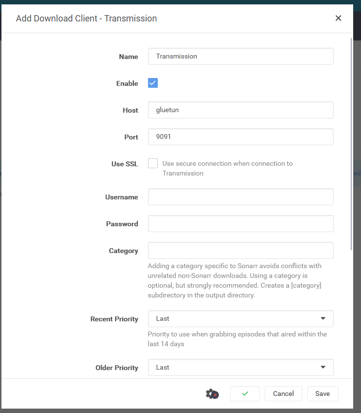 Sonarr url :http://sonarr:8989