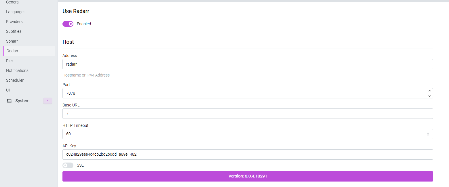 radarr url :http://radarr:7878