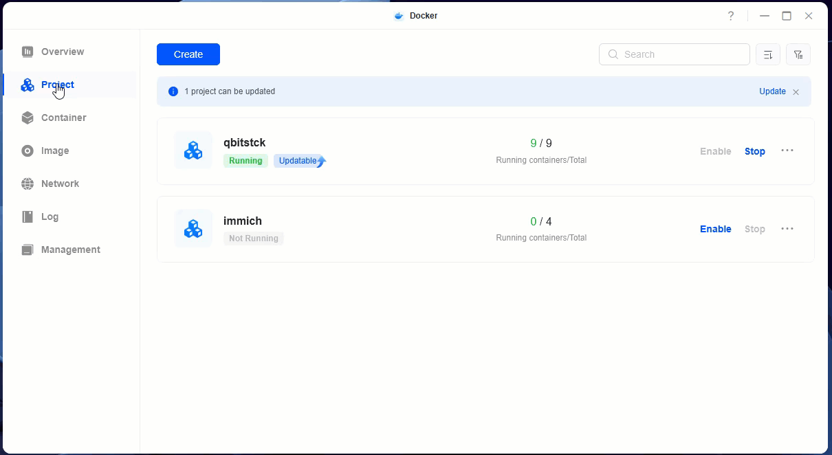 - Give it a name, paste the compose file you copied (with changes) in the yaml area and hit create
